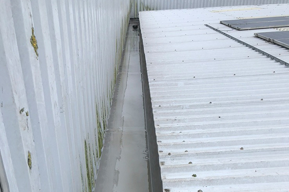 Gutter blockages affecting three commercial buildings near Heathrow.